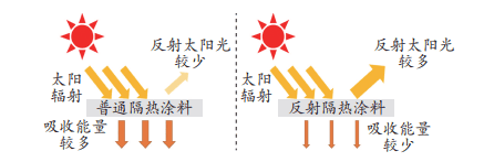 图1 普通隔热涂料与反射隔热涂料的反射隔热性能对比