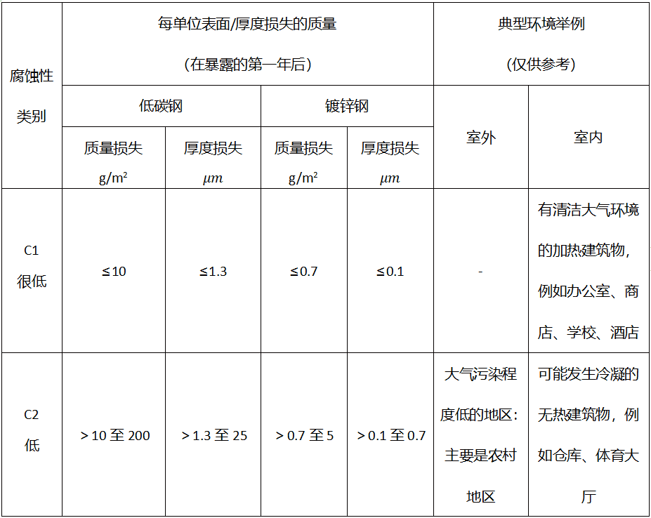 表3.2-1 大气腐蚀性类别和典型环境的例子